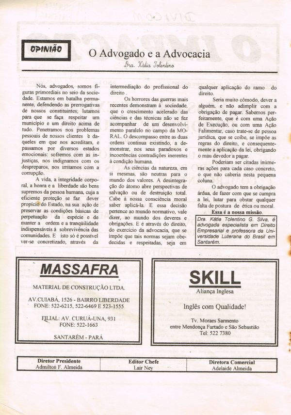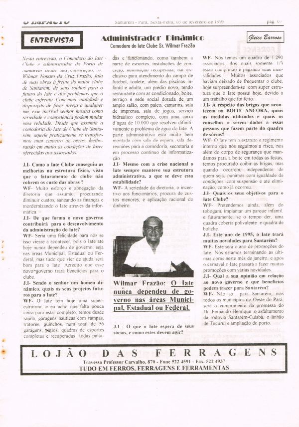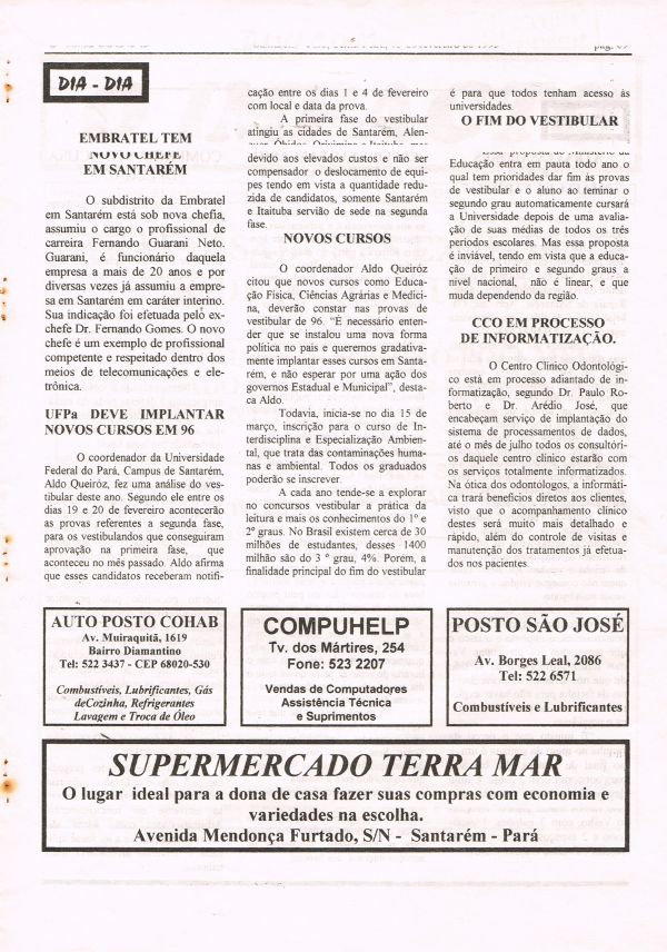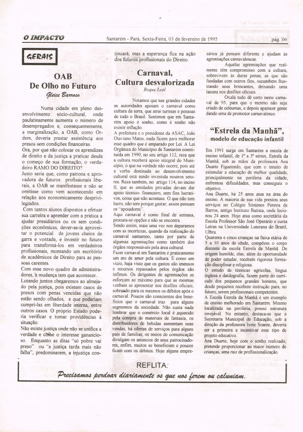 Jornal editado em Santarém. Ano I Nº 01 - 03.02.1995