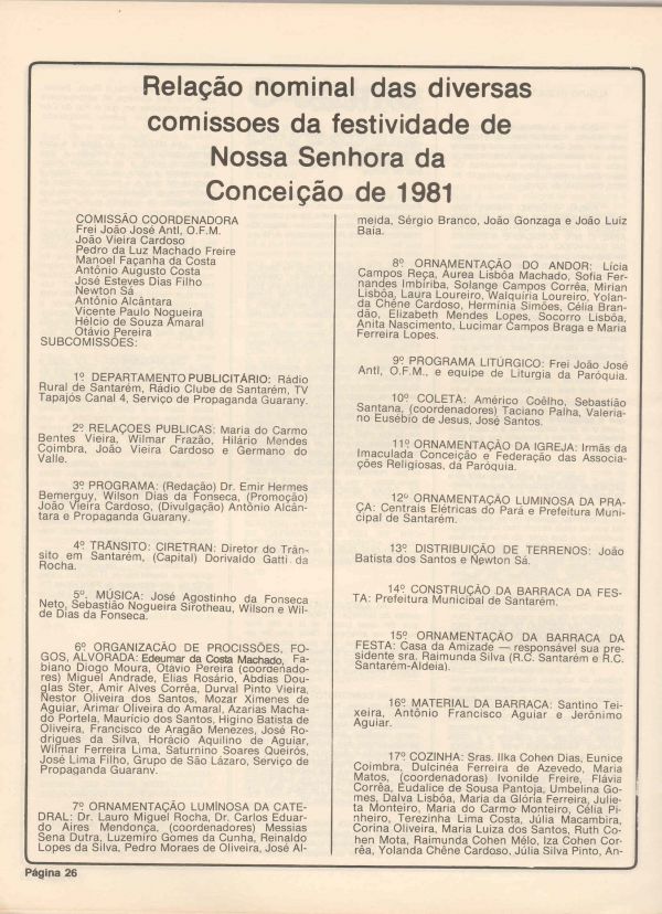 Programa da Festa de Nossa Senhora da Conceição