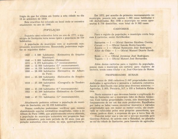 Em 1948, por ocasião do centenário da elevação de Santarém à categoria de cidade, o prefeito Aderbal Tapajós Caetano Corrêa (1948/51), a fim de homenagear a importante data, publicou o "Álbum do Centenário", fartamente ilustrado, onde traz uma radiografia da cidade, realçando os aspectos sócio-econômicos de Santarém.