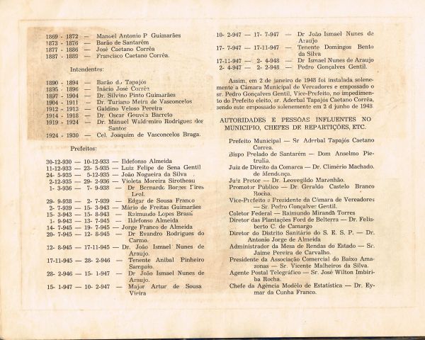 A comissão organizadora do álbum era composta pelo tabelião do 2ª ofício da Comarca, Santino Sirotheau Corrêa; o escrivão da Mesa de Rendas do Estado, Jorge Franco de Almeida; e o chefe da Agência Modelo de Estatística, meu saudoso amigo Eymar da Cunha Franco que, com toda certeza, foi quem fez a pesquisa para compor os dados gerais do município, escreveu o texto e editou o álbum.