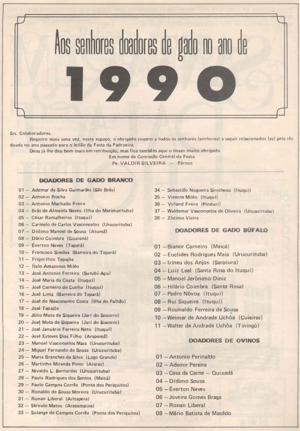 Programa da Festa de Nossa Senhora da Conceição
