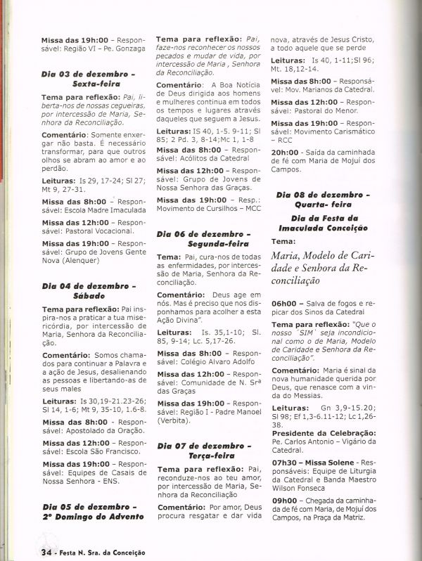 Programa da Festa de Nossa Senhora da Conceição