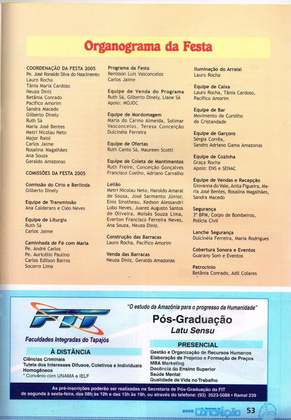 Revista anual com programação da festa de Nossa Senhora da Conceição