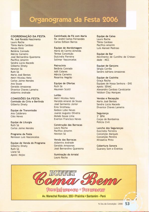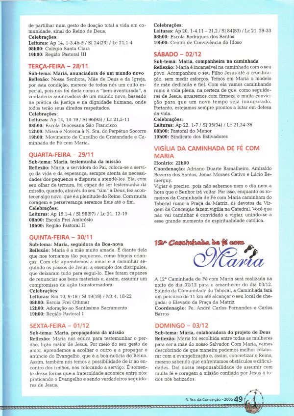 Revista anual com programação da festa de Nossa Senhora da Conceição