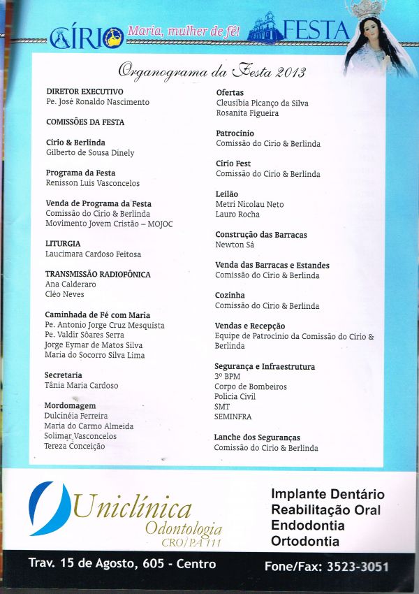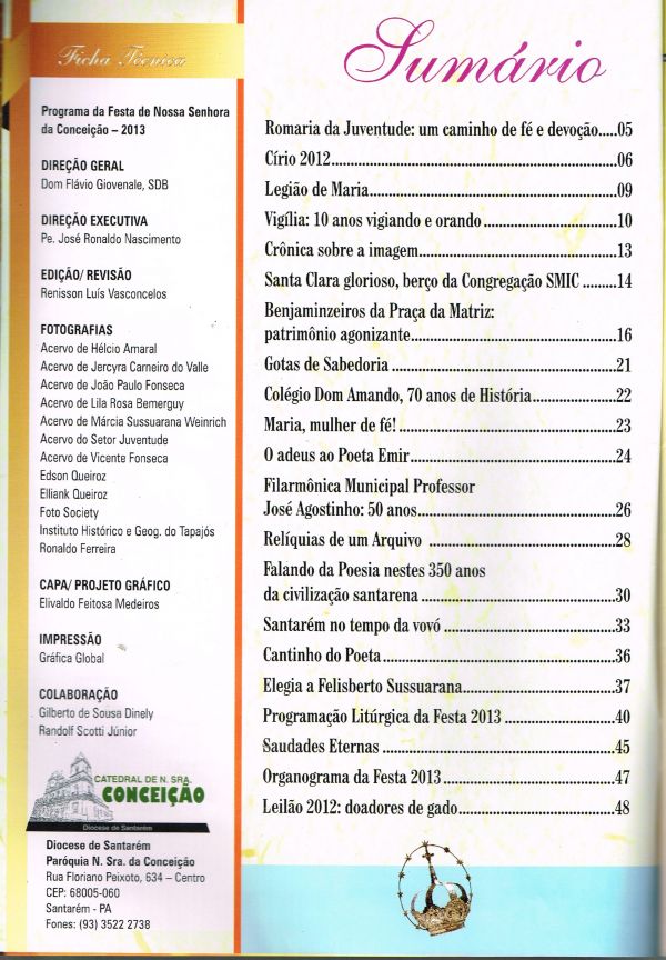 Revista anual com programação da festa de Nossa Senhora da Conceição